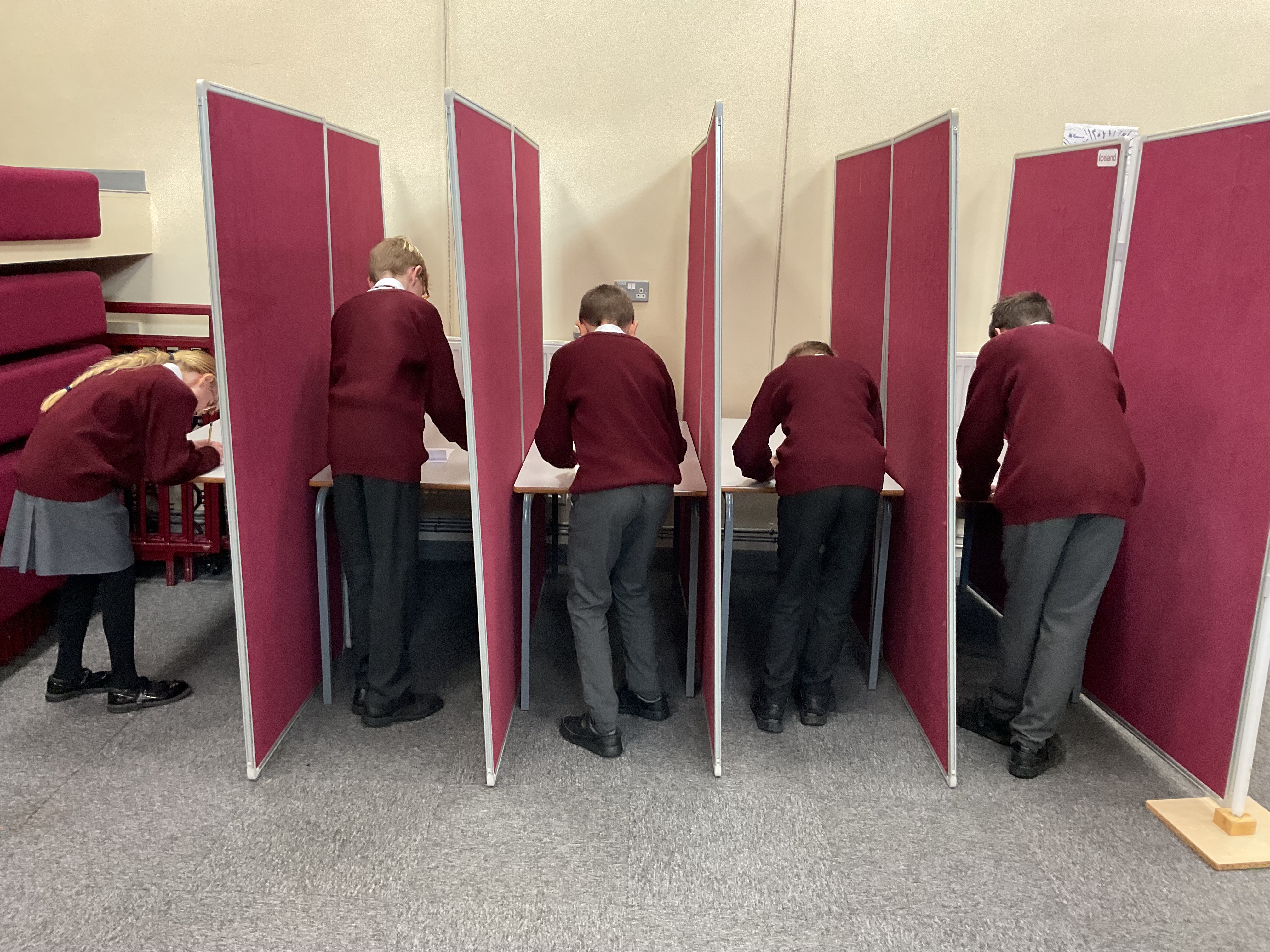 Following the campaign, the whole school made their way to a specially set-up Polling Station mirroring the real experience of casting a vote. Ballot papers were issued, booths were used, and votes were posted into sealed ballot boxes before being counted by staff and student volunteers.