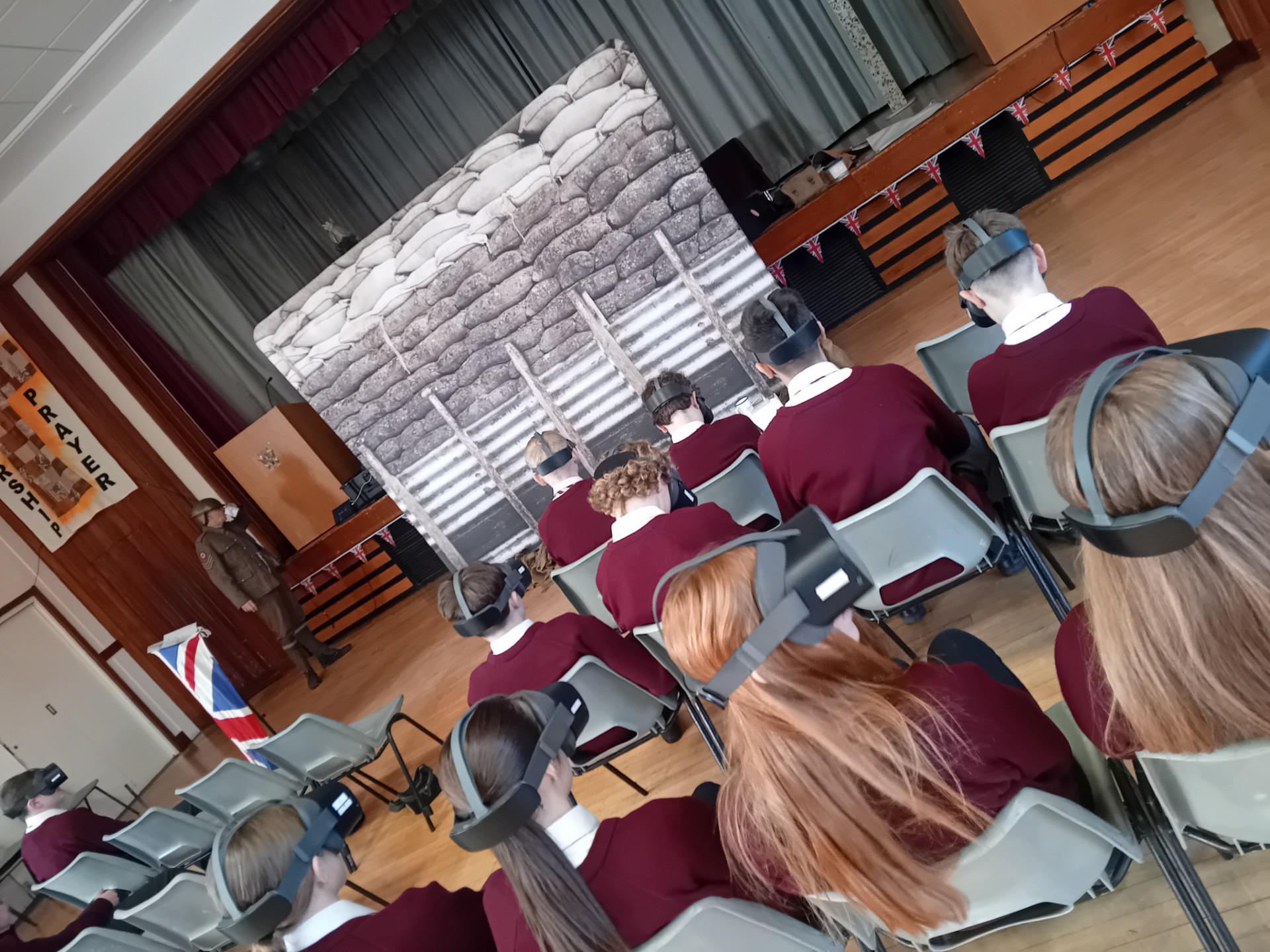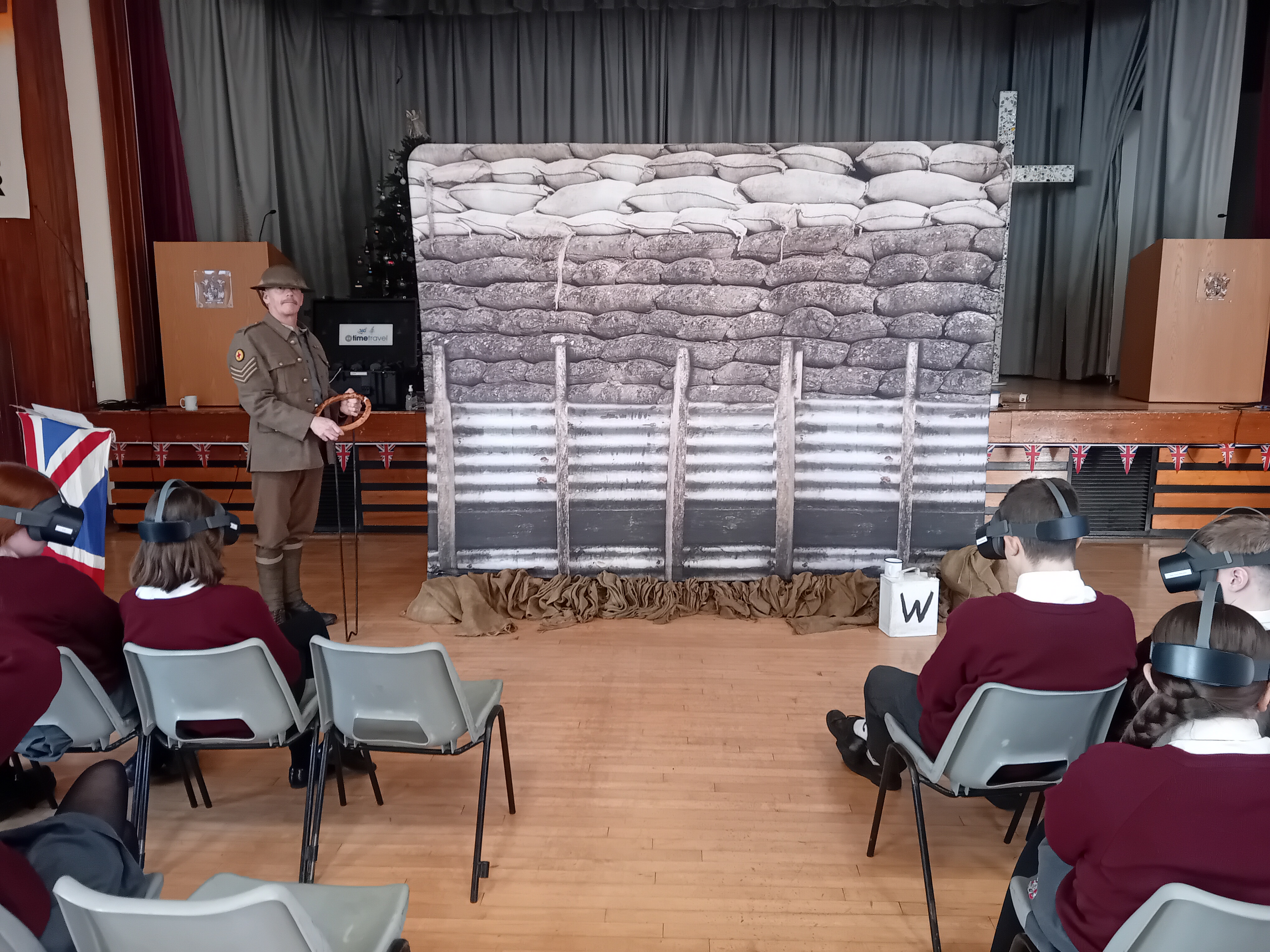 On Tuesday and Wednesday of the first week in December, Year 9 Historians at Saint Aidan’s were treated to a virtual reality experience of warfare and medicine on the British Sector of the Western Front. A former member of the Royal Army Medical Corps and subject specialist, Sergeant Parsons, delivered an unforgettable series of sessions immersing students in the sights and sounds of a frontline trench, the daily routines of soldiers, and what it was like to ‘go over the top’.